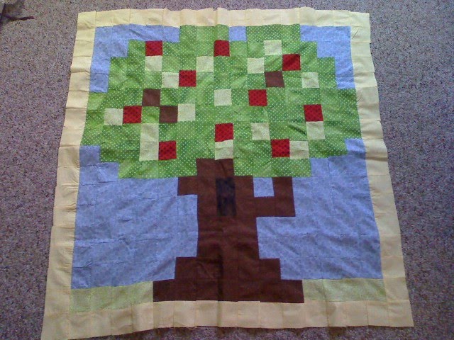 It's not done yet, obviously, but it's close. To complete it all I would need to do is sew around the edges and cut the lines so they will frey when washed, and it'd be done. I came home and showed Shaun, and we decided it would look better with a border, so I'm going to add that before sewing up the edges. I just need to get more fabric.